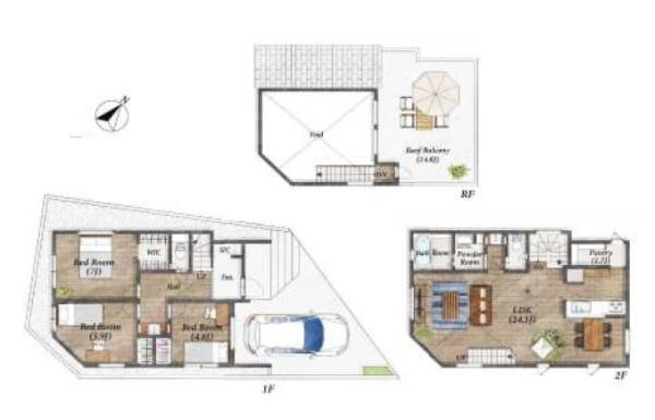 | 土地面積 | 99.39m²(30.07坪) | 建物面積 | 105.72m²(31.98坪) |
