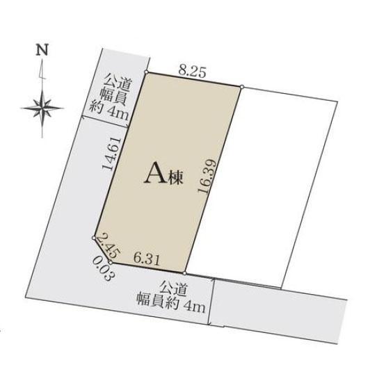 | 私道面積 | 接道状況 | 角地 南4m 西4m |
