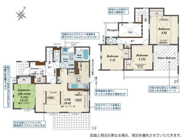 | 備考 | 長期優良住宅認定通知書有;耐震構造;制震構造;角地;地盤調査書有;土地広さ 50坪以上;前道6m以上;2沿線以上利用可;階建 2階建;全室2面採光;LDK広さ 20帖以上;和室;吹抜け;上水道 公営;汚水 下水道;ガス 都市ガス;フローリング;複層ガラス;駐車可能台数 2台可;24時間換気システム;床暖房;全居室収納;クローゼット;シューズボックス;床下収納;システムキッチン;カウンターキッチン;ガスコンロ;コンロ口数 三口;浄水器;独立洗面台;シャンプードレッサー;オートバス;追い焚き;浴室に窓;浴室乾燥機;トイレ2ヶ所;温水洗浄便座;バルコニー バルコニー有;全居室複層ガラス;TVインターホン;火災警報器(報知機);小学校 徒歩10分以内備考_80文字:カースペース2台分有 物件シート備考:カースペース2台分有 備考_300文字:カースペース2台分有 コピー元備考:カースペース2台分有 | ||