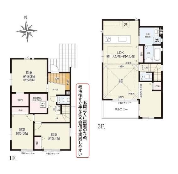 | 備考 | 地盤調査書有;2沿線以上利用可;階建 2階建;LDK広さ 20帖以上;吹抜け;上水道 公営;汚水 下水道;ガス 都市ガス;フローリング;全居室フローリング;複層ガラス;シャッター雨戸;駐車可能台数 2台可;24時間換気システム;床暖房;全居室収納;収納スペース;クローゼット;ウォークインクローゼット;シューズボックス;床下収納;システムキッチン;カウンターキッチン;ガスコンロ;コンロ口数 三口;食器洗乾燥機;浄水器;独立洗面台;シャンプードレッサー;オートバス;追い焚き;浴室に窓;浴室暖房;浴室乾燥機;トイレ2ヶ所;温水洗浄便座;バルコニー バルコニー有;南面バルコニー;全居室複層ガラス;TVインターホン;火災警報器(報知機)物件シート備考:全3棟(1号棟) カースペース2台分有 ※建物面積に備蓄倉庫部分3.72平米含む 備考_300文字:全3棟(1号棟) カースペース2台分有 ※建物面積に備蓄倉庫部分3.72平米含む コピー元備考:全3棟(1号棟) カースペース2台分有 ※建物面積に備蓄倉庫部分3.72平米含む | ||