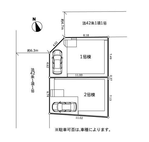 | 私道面積 | 接道状況 | 角地 西6.3m 北4.7m |