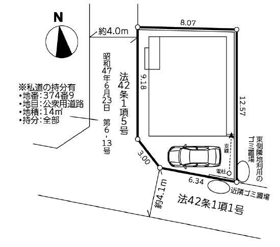 | 私道面積 | 14m² | 接道状況 | 角地 西4m 南4.1m |