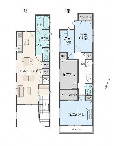 | 土地面積 | 88.65m²(26.82坪) | 建物面積 | 107.35m²(32.47坪) |