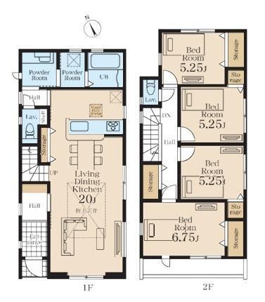 | 土地面積 | 157.17m²(47.54坪) | 建物面積 | 105.99m²(32.06坪) |