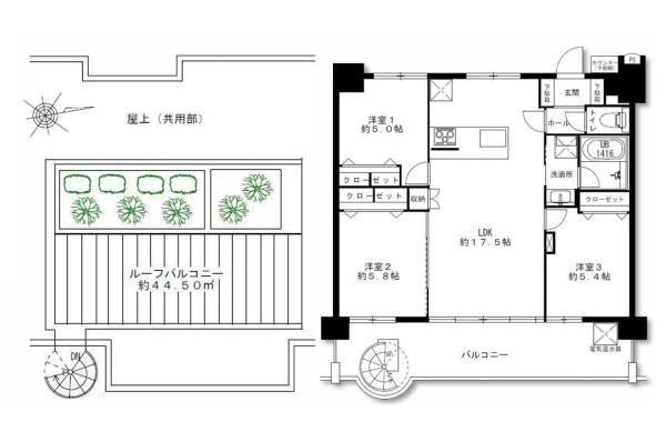 | 専有面積 | 68.25m²(20.65坪) | バルコニー面積 | 17.14m²(5.18坪) |
