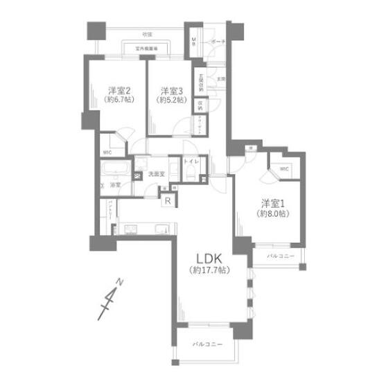 | 専有面積 | 88.88m²(26.89坪) | バルコニー面積 | 8.01m²(2.42坪) |