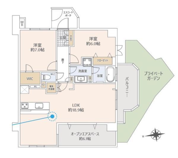 | 専有面積 | 71.1m²(21.51坪) | バルコニー面積 | 6.99m²(2.11坪) |