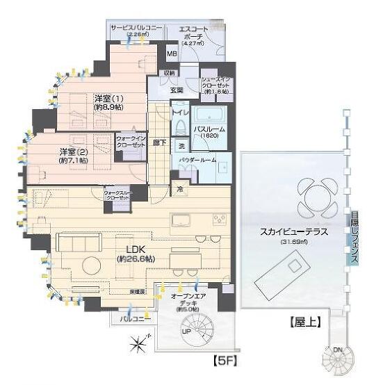 | 専有面積 | 94.83m²(28.69坪) | バルコニー面積 | 1.85m²(0.56坪) |