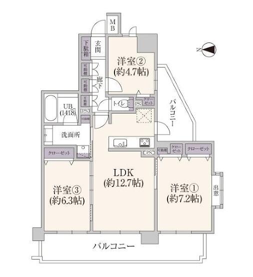 | 専有面積 | 68.88m²(20.84坪) | バルコニー面積 | 18.39m²(5.56坪) |