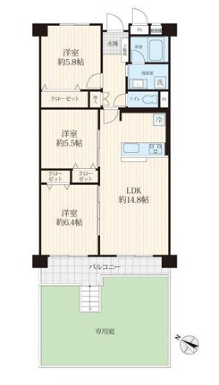 | 専有面積 | 69.78m²(21.11坪) | バルコニー面積 | 7.08m²(2.14坪) |