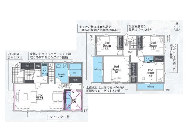 | 備考 | 平坦地;区画整理地内;整形地;緑豊かな住宅地;閑静な住宅地;地盤調査書有;前道6m以上;2沿線以上利用可;階建 2階建;デザイナーズ;部屋向き 南向き;採光面 2面採光;全室2面採光;日当り良好;通風良好;LDK広さ 20帖以上;ガス 都市ガス;フローリング;複層ガラス;ハイルーフ駐車場;駐車可能台数 2台可;ダウンライト;24時間換気システム;クローゼット;シューズインクローゼット;床下収納;システムキッチン;ガスコンロ;コンロ口数 三口;グリル;食器洗乾燥機;浄水器;独立洗面台;シャンプードレッサー;オートバス;追い焚き;浴室に窓;浴室乾燥機;トイレ2ヶ所;温水洗浄便座;高機能トイレ;バルコニー バルコニー有;南面バルコニー;BELS/省エネ基準適合認定建築物;省エネラベル;省エネルギー対策;フラット35・S適合証明書有;全居室複層ガラス;TVインターホン;ディンプルキー;火災警報器(報知機);セキュリティ充実;隣家との間隔が大きい;周辺交通量少なめ;小学校 徒歩10分以内;入居可能時期 即入居可備考_80文字:カースペース2台分有(車種による) 物件シート備考:カースペース2台分有(車種による) 備考_300文字:カースペース2台分有(車種による) コピー元備考:カースペース2台分有(車種による) | ||