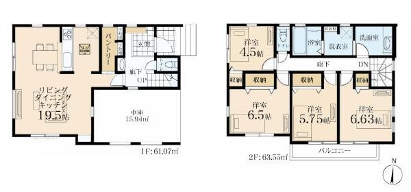 | 土地面積 | 108.31m²(32.76坪) | 建物面積 | 124.62m²(37.70坪) |