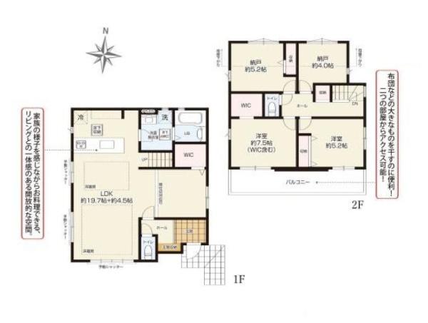 | 備考 | 整形地;地盤調査書有;南側道路面す;階建 2階建;部屋向き 南向き;日当り良好;LDK広さ 20帖以上;上水道 公営;汚水 下水道;ガス 都市ガス;フローリング;全居室フローリング;複層ガラス;シャッター雨戸;駐車可能台数 2台可;リビング階段;24時間換気システム;床暖房;収納スペース;納戸;クローゼット;ウォークインクローゼット;シューズボックス;床下収納;システムキッチン;カウンターキッチン;ガスコンロ;コンロ口数 三口;食器洗乾燥機;浄水器;独立洗面台;シャンプードレッサー;オートバス;追い焚き;浴室に窓;浴室暖房;浴室乾燥機;トイレ2ヶ所;温水洗浄便座;バルコニー バルコニー有;南面バルコニー;全居室複層ガラス;TVインターホン;火災警報器(報知機);小学校 徒歩10分以内備考_80文字:全2棟(2号棟) カースペース2台分有(車種による) 物件シート備考:全2棟(2号棟) カースペース2台分有(車種による) 備考_300文字:全2棟(2号棟) カースペース2台分有(車種による) コピー元備考:全2棟(2号棟) カースペース2台分有(車種による) | ||