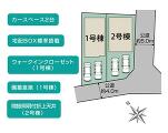 | 備考 | 設計住宅性能評価有;建設住宅性能評価書有(新築時);長期優良住宅認定通知書有;耐震構造;制震構造;地盤調査書有;2沿線以上利用可;階建 2階建;全室2面採光;LDK広さ 18帖以上;上水道 公営;汚水 下水道;ガス 都市ガス;フローリング;複層ガラス;駐車可能台数 2台可;リビング階段;24時間換気システム;全居室収納;クローゼット;ウォークインクローゼット;シューズボックス;床下収納;システムキッチン;カウンターキッチン;ガスコンロ;コンロ口数 三口;食器洗乾燥機;浄水器;独立洗面台;シャンプードレッサー;オートバス;追い焚き;浴室に窓;浴室乾燥機;トイレ2ヶ所;温水洗浄便座;バルコニー バルコニー有;全居室複層ガラス;TVインターホン;火災警報器(報知機)備考_80文字:全2棟(1号棟) カースペース2台分有 備蓄倉庫部分2.48平米含む 物件シート備考:全2棟(1号棟) カースペース2台分有 備蓄倉庫部分2.48平米含む 備考_300文字:全2棟(1号棟) カースペース2台分有 備蓄倉庫部分2.48平米含む コピー元備考:全2棟(1号棟) カースペース2台分有 備蓄倉庫部分2.48平米含む | ||