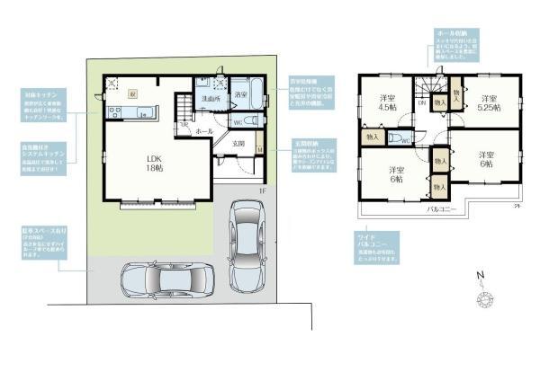 | 備考 | 設計住宅性能評価有;建設住宅性能評価書有(新築時);長期優良住宅認定通知書有;耐震構造;整形地;地盤調査書有;南側道路面す;2沿線以上利用可;階建 2階建;部屋向き 南向き;日当り良好;LDK広さ 18帖以上;上水道 公営;汚水 下水道;ガス 都市ガス;フローリング;全居室フローリング;複層ガラス;駐車可能台数 2台可;24時間換気システム;全居室収納;収納スペース;クローゼット;シューズボックス;床下収納;システムキッチン;カウンターキッチン;ガスコンロ;コンロ口数 三口;食器洗乾燥機;浄水器;独立洗面台;シャンプードレッサー;オートバス;追い焚き;浴室に窓;浴室乾燥機;トイレ2ヶ所;温水洗浄便座;バルコニー バルコニー有;南面バルコニー;全居室複層ガラス;TVインターホン;火災警報器(報知機);小学校 徒歩10分以内物件シート備考:カースペース2台分有 備考_300文字:カースペース2台分有 コピー元備考:カースペース2台分有 | ||
