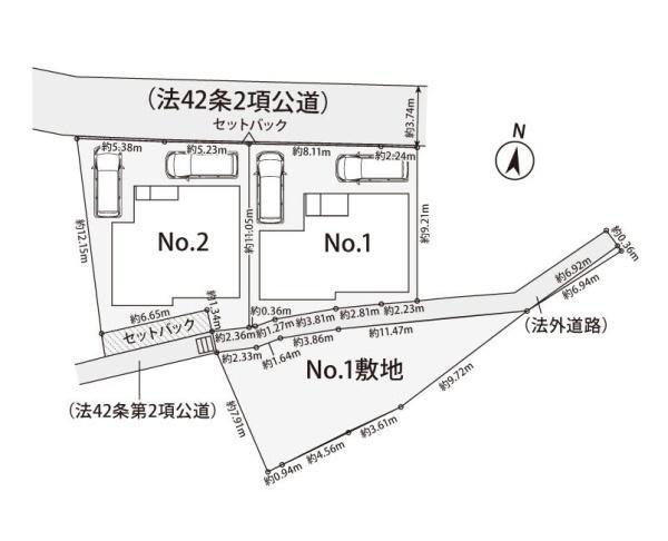 | 私道面積 | 接道状況 | 二方 北3.7m 南2m |