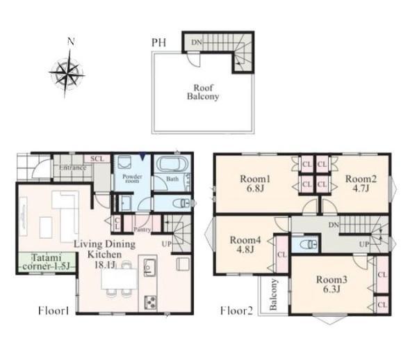 | 土地面積 | 119.69m²(36.21坪) | 建物面積 | 106.29m²(32.15坪) |
