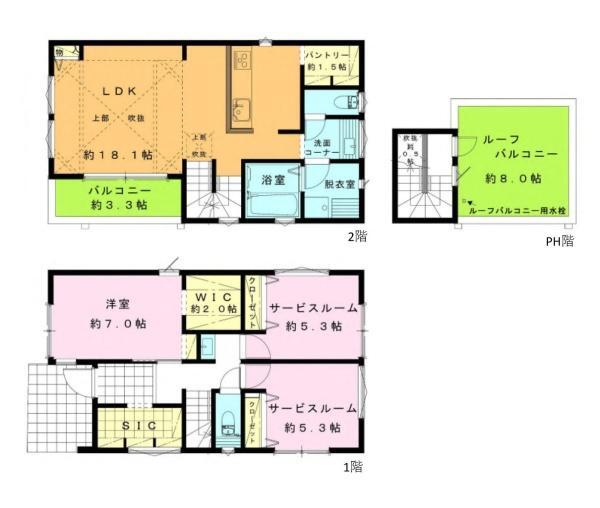 | 土地面積 | 106.69m²(32.27坪) | 建物面積 | 99.16m²(30.00坪) |