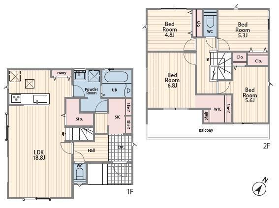 | 土地面積 | 153.4m²(46.40坪) | 建物面積 | 107.12m²(32.40坪) |