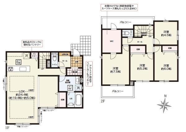 | 備考 | 地盤調査書有;階建 2階建;LDK広さ 20帖以上;上水道 公営;汚水 下水道;ガス 都市ガス;フローリング;全居室フローリング;複層ガラス;シャッター雨戸;駐車可能台数 3台以上可;リビング階段;24時間換気システム;床暖房;収納スペース;クローゼット;ウォークインクローゼット;シューズボックス;床下収納;システムキッチン;カウンターキッチン;キッチンタイプ オープンキッチン;ガスコンロ;コンロ口数 三口;パントリー;食器洗乾燥機;浄水器;独立洗面台;シャンプードレッサー;オートバス;追い焚き;浴室に窓;浴室暖房;浴室乾燥機;トイレ2ヶ所;温水洗浄便座;バルコニー 2面バルコニー;南面バルコニー;全居室複層ガラス;TVインターホン;火災警報器(報知機);小学校 徒歩10分以内;間取り変更可能物件シート備考:カースペース3台分有 備考_300文字:カースペース3台分有 コピー元備考:カースペース3台分有 | ||