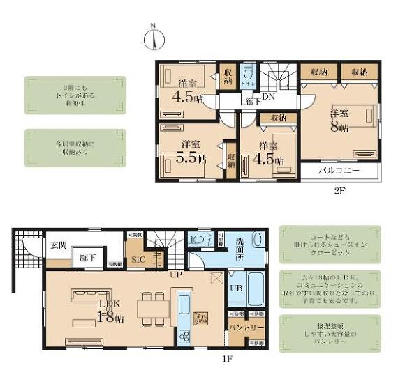 | 備考 | 設計住宅性能評価有;建設住宅性能評価書有(新築時);長期優良住宅認定通知書有;耐震構造;地盤調査書有;前道6m以上;2沿線以上利用可;階建 2階建;LDK広さ 18帖以上;上水道 公営;汚水 下水道;ガス 都市ガス;フローリング;全居室フローリング;複層ガラス;駐車可能台数 2台可;リビング階段;24時間換気システム;全居室収納;収納スペース;クローゼット;シューズボックス;シューズインクローゼット;床下収納;システムキッチン;カウンターキッチン;ガスコンロ;コンロ口数 三口;パントリー;浄水器;独立洗面台;シャンプードレッサー;オートバス;追い焚き;浴室乾燥機;トイレ2ヶ所;温水洗浄便座;バルコニー バルコニー有;南面バルコニー;人感センサー付照明;全居室複層ガラス;TVインターホン;火災警報器(報知機);小学校 徒歩10分以内;入居可能時期 即入居可物件シート備考:全2棟(1号棟) カースペース2台分有(車種による) 備考_300文字:全2棟(1号棟) カースペース2台分有(車種による) コピー元備考:全2棟(1号棟) カースペース2台分有(車種による) | ||