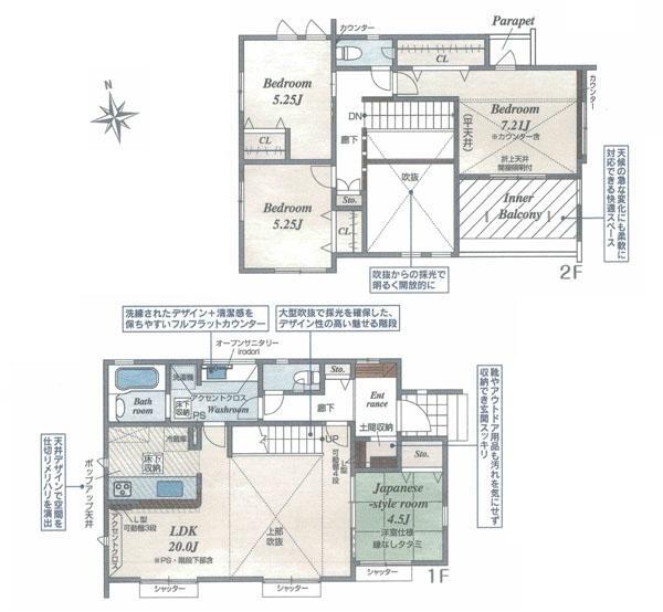 | 備考 | 設計住宅性能評価有;建設住宅性能評価書有(新築時);耐震構造;制震構造;角地;地盤調査書有;土地広さ 50坪以上;2沿線以上利用可;階建 2階建;全室2面採光;LDK広さ 20帖以上;和室;吹抜け;上水道 公営;汚水 下水道;ガス 集中プロパン;フローリング;複層ガラス;駐車可能台数 2台可;リビング階段;24時間換気システム;全居室収納;クローゼット;シューズボックス;床下収納;システムキッチン;カウンターキッチン;ガスコンロ;コンロ口数 三口;浄水器;独立洗面台;シャンプードレッサー;オートバス;追い焚き;浴室に窓;浴室乾燥機;トイレ2ヶ所;温水洗浄便座;バルコニー バルコニー有;南面バルコニー;全居室複層ガラス;TVインターホン;火災警報器(報知機)物件シート備考:カースペース2台分有 インナーバルコニー部分6.62平米含む 備考_300文字:カースペース2台分有 インナーバルコニー部分6.62平米含む コピー元備考:カースペース2台分有 インナーバルコニー部分6.62平米含む | ||