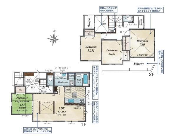 | 備考 | 設計住宅性能評価有;建設住宅性能評価書有(新築時);長期優良住宅認定通知書有;耐震構造;制震構造;地盤調査書有;土地広さ 50坪以上;南側道路面す;階建 2階建;LDK広さ 15帖以上;和室;吹抜け;上水道 公営;汚水 下水道;ガス 個別プロパン;フローリング;複層ガラス;駐車可能台数 3台以上可;24時間換気システム;全居室収納;クローゼット;シューズボックス;床下収納;システムキッチン;カウンターキッチン;ガスコンロ;コンロ口数 三口;浄水器;独立洗面台;シャンプードレッサー;オートバス;追い焚き;浴室に窓;浴室乾燥機;トイレ2ヶ所;温水洗浄便座;バルコニー バルコニー有;南面バルコニー;全居室複層ガラス;TVインターホン;火災警報器(報知機)物件シート備考:全4棟(1号棟)カースペース3台分有(車種による) 協定道路部分0.85平米含 備考_300文字:全4棟(1号棟)カースペース3台分有(車種による) 協定道路部分0.85平米含 コピー元備考:全4棟(1号棟)カースペース3台分有(車種による) 協定道路部分0.85平米含 | ||