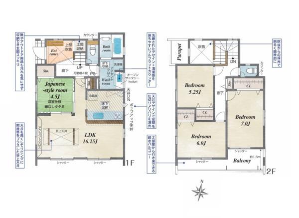 | 備考 | 地盤調査書有;南側道路面す;2沿線以上利用可;階建 2階建;LDK広さ 15帖以上;和室;吹抜け;ガス 都市ガス;フローリング;複層ガラス;駐車可能台数 2台可;24時間換気システム;クローゼット;床下収納;システムキッチン;ガスコンロ;コンロ口数 三口;食器洗乾燥機;浄水器;独立洗面台;シャンプードレッサー;オートバス;追い焚き;浴室暖房;浴室乾燥機;トイレ2ヶ所;温水洗浄便座;バルコニー バルコニー有;全居室複層ガラス;TVインターホン;火災警報器(報知機);小学校 徒歩10分以内備考_80文字:カースペース2台分有(車種による) 物件シート備考:カースペース2台分有(車種による) 備考_300文字:カースペース2台分有(車種による) コピー元備考:カースペース2台分有(車種による) | ||