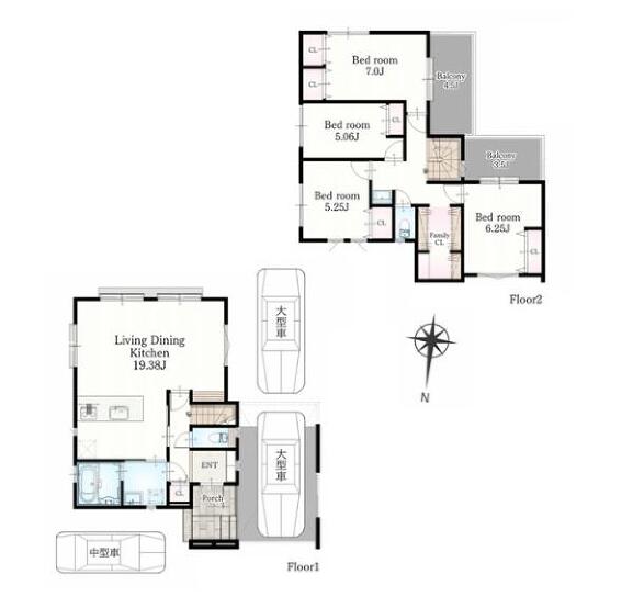 | 土地面積 | 173.78m²(52.57坪) | 建物面積 | 132.39m²(40.05坪) |