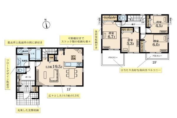 | 備考 | 地盤調査書有;南側道路面す;2沿線以上利用可;階建 2階建;LDK広さ 18帖以上;上水道 公営;ガス 集中プロパン;フローリング;複層ガラス;駐車可能台数 2台可;24時間換気システム;クローゼット;床下収納;システムキッチン;ガスコンロ;コンロ口数 三口;浄水器;独立洗面台;シャンプードレッサー;オートバス;追い焚き;浴室暖房;浴室乾燥機;トイレ2ヶ所;温水洗浄便座;バルコニー バルコニー有;人感センサー付照明;全居室複層ガラス;TVインターホン;火災警報器(報知機);小学校 徒歩10分以内備考_80文字:カースペース2台分有(車種による) 物件シート備考:カースペース2台分有(車種による) 備考_300文字:カースペース2台分有(車種による) コピー元備考:カースペース2台分有(車種による) | ||