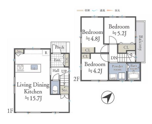 | 土地面積 | 72.96m²(22.07坪) | 建物面積 | 69.55m²(21.04坪) |