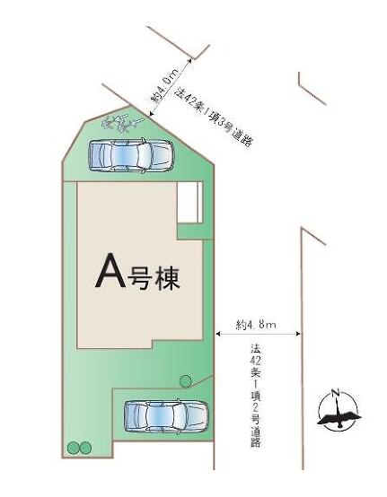 | 私道面積 | 接道状況 | 角地 東4.8m 北東4m |
