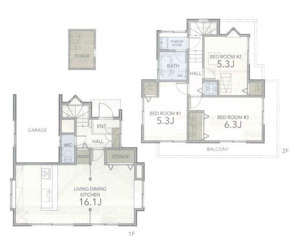 | 土地面積 | 101.15m²(30.60坪) | 建物面積 | 91.12m²(27.56坪) |