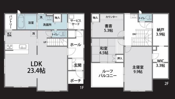 | 土地面積 | 178.25m²(53.92坪) | 建物面積 | 127.41m²(38.54坪) |