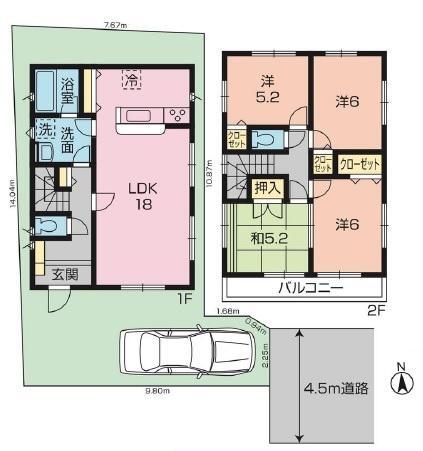 | 土地面積 | 110.19m²(33.33坪) | 建物面積 | 94.76m²(28.66坪) |
