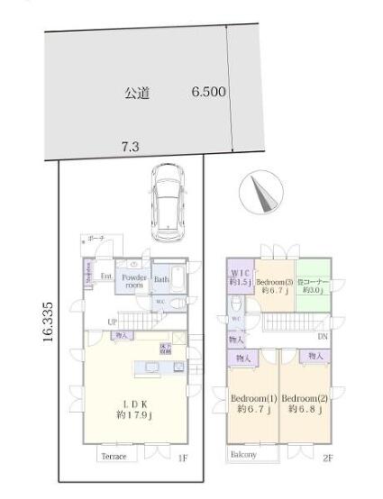 | 土地面積 | 121.66m²(36.80坪) | 建物面積 | 99.54m²(30.11坪) |