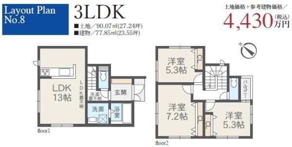 | 備考 | 引渡条件:現況有姿 角地;前道6m以上;2沿線以上利用可;上水道 公営;汚水 下水道備考_80文字:全8区画(8号地) 建物参考プラン:建物面積77.85平米・建物価格1,750万円(税込) 物件シート備考:全8区画(8号地) 建物参考プラン:建物面積77.85平米・建物価格1,750万円(税込) 備考_300文字:全8区画(8号地) 建物参考プラン:建物面積77.85平米・建物価格1,750万円(税込) コピー元備考:全8区画(8号地) 建物参考プラン:建物面積77.85平米・建物価格1,750万円(税込) | ||