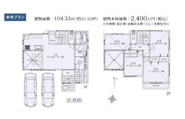 | 備考 | 引渡条件:現況有姿 2沿線以上利用可;日当り良好;上水道 公営;汚水 下水道;ガス 都市ガス;小学校 徒歩10分以内;建築条件なし備考_80文字:建物参考プラン:建物面積104.33平米・建物価格2,400万円(税込) 物件シート備考:建物参考プラン:建物面積104.33平米・建物価格2,400万円(税込) 備考_300文字:建物参考プラン:建物面積104.33平米・建物価格2,400万円(税込) コピー元備考:建物参考プラン:建物面積104.33平米・建物価格2,400万円(税込) | ||