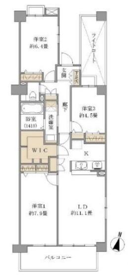 | 専有面積 | 77.5m²(23.44坪) | バルコニー面積 | 8.88m²(2.69坪) |