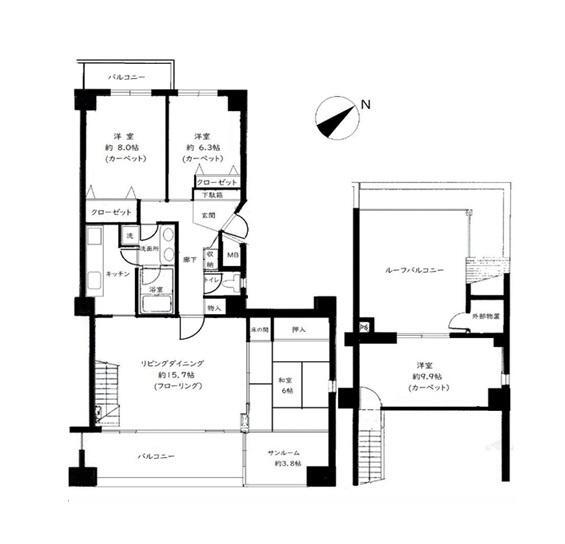 | 専有面積 | 120.9m²(36.57坪) | バルコニー面積 | 17.03m²(5.15坪) |