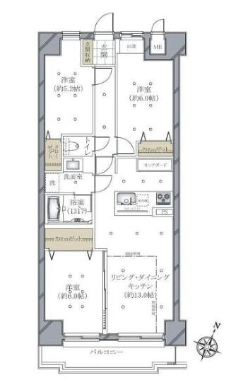 | 専有面積 | 68.88m²(20.84坪) | バルコニー面積 | 6.36m²(1.92坪) |