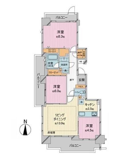 | 専有面積 | 76.86m²(23.25坪) | バルコニー面積 | 26.32m²(7.96坪) |