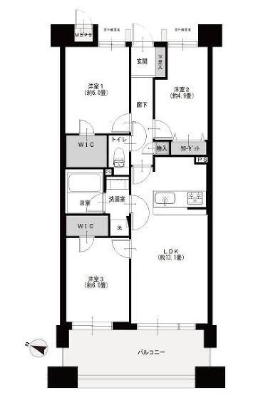 | 専有面積 | 66.67m²(20.17坪) | バルコニー面積 | 11.8m²(3.57坪) |
