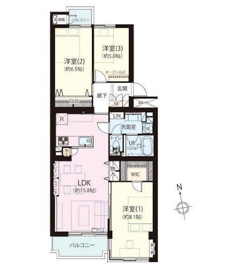 | 専有面積 | 78.52m²(23.75坪) | バルコニー面積 | 6.34m²(1.92坪) |