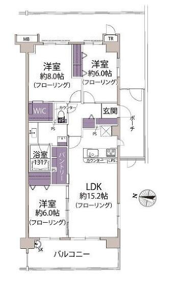 | 専有面積 | 80.46m²(24.34坪) | バルコニー面積 | 12.2m²(3.69坪) |