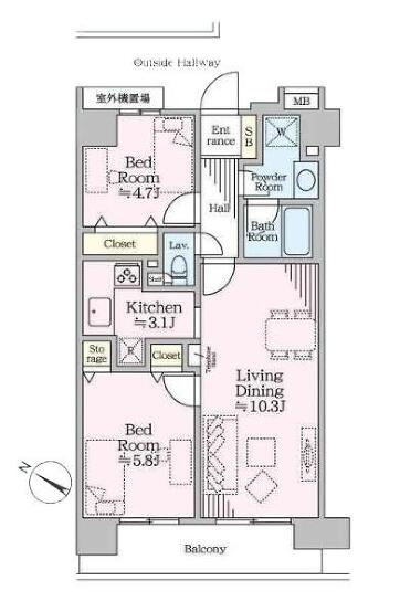 53.2m²(16.09坪) 2LDK 2階 |
