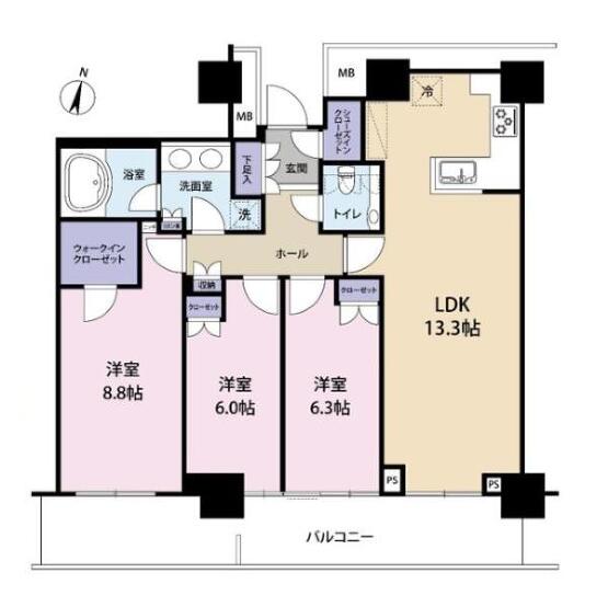 | 専有面積 | 89.45m²(27.06坪) | バルコニー面積 | 19.49m²(5.90坪) |