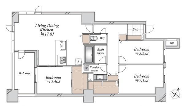 | 専有面積 | 85.36m²(25.82坪) | バルコニー面積 | 7.31m²(2.21坪) |