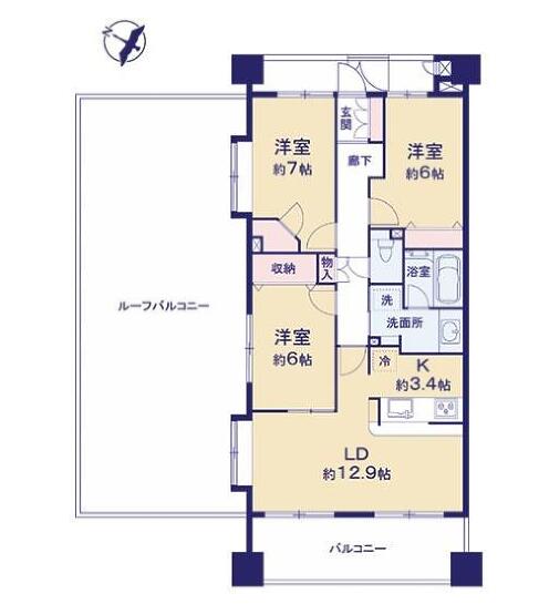| 専有面積 | 79.34m²(24.00坪) | バルコニー面積 | 12.8m²(3.87坪) |