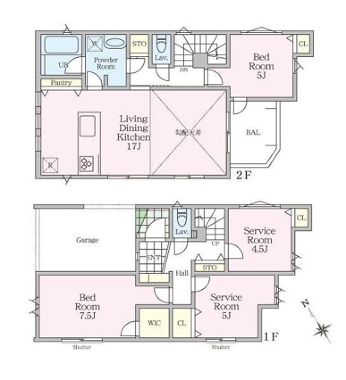 1階 5帖 1階 4.5帖 2階 17帖 2階洋室 5帖 |